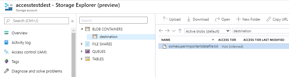 Let’s verify that the file has been actually copied to destination blob using Storage Explorer: