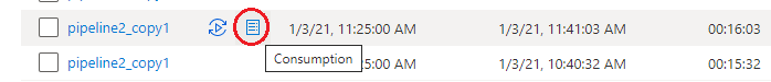 Consumption details for each run can be viewed by pressing Consumption icon:
