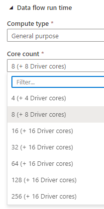 Cluster size can be configured while provisioning the runtime and minimum setup is 8 cores (16 for memory optimized). Here’s a list of available values for General purpose compute type: